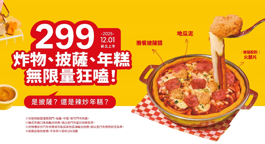 連鎖韓式年糕鍋品牌「兩餐 DOOKKI」正式宣布自 2025 年 12 月 1 日起,推出與人氣披薩品牌 EATPIZZA 的全新聯名企劃。此次合作不僅帶來自助吧多項新品,更推出全新口味 「兩餐披薩醬」年糕鍋,以韓式料理結合義式風味,為冬季餐飲市場推出嶄新話題。 此次聯名最大亮點,即是許多粉絲敲碗的 「瑪格麗特披薩」 首度進駐兩餐自助吧(限西門、信義、中壢、新竹門市供應)。香濃番茄、莫札瑞拉起司與羅勒的經典組合,讓消費者在享受韓式年糕鍋與炸物之餘,也能同時品嘗地道義式風味。